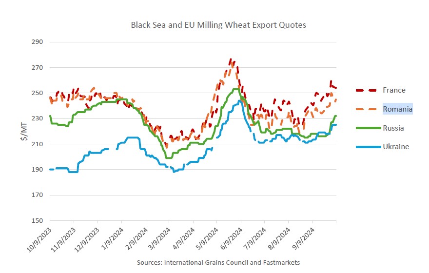 Astfel, chiar și în condițiile restricțiilor la import impuse de principalii parteneri comerciali Turcia și Kazahstan, Rusia a extins exporturile către Egipt (a doua piață de desfacere pentru grâul românesc, cu 16% din total exporturi în 2023/2024), Kenya, Maroc (5,3% din total export grâu în 2023/2024) , Nigeria, Vietnam (2% din exporturile de grâu din 2023/2024) și alte piețe unde oferta limitată din Franța a redus concurența.