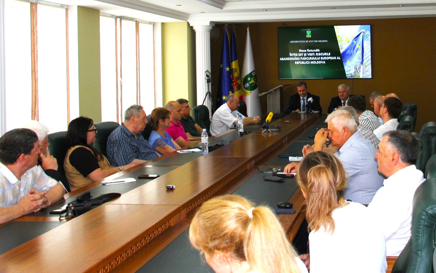 Miercuri, 16 iulie, la Universitatea de Stat din Moldova s-a desfășurat masa rotundă cu genericul „Între Est și Vest: Riscurile abandonării parcursului european al Republicii Moldova”, la care au participat