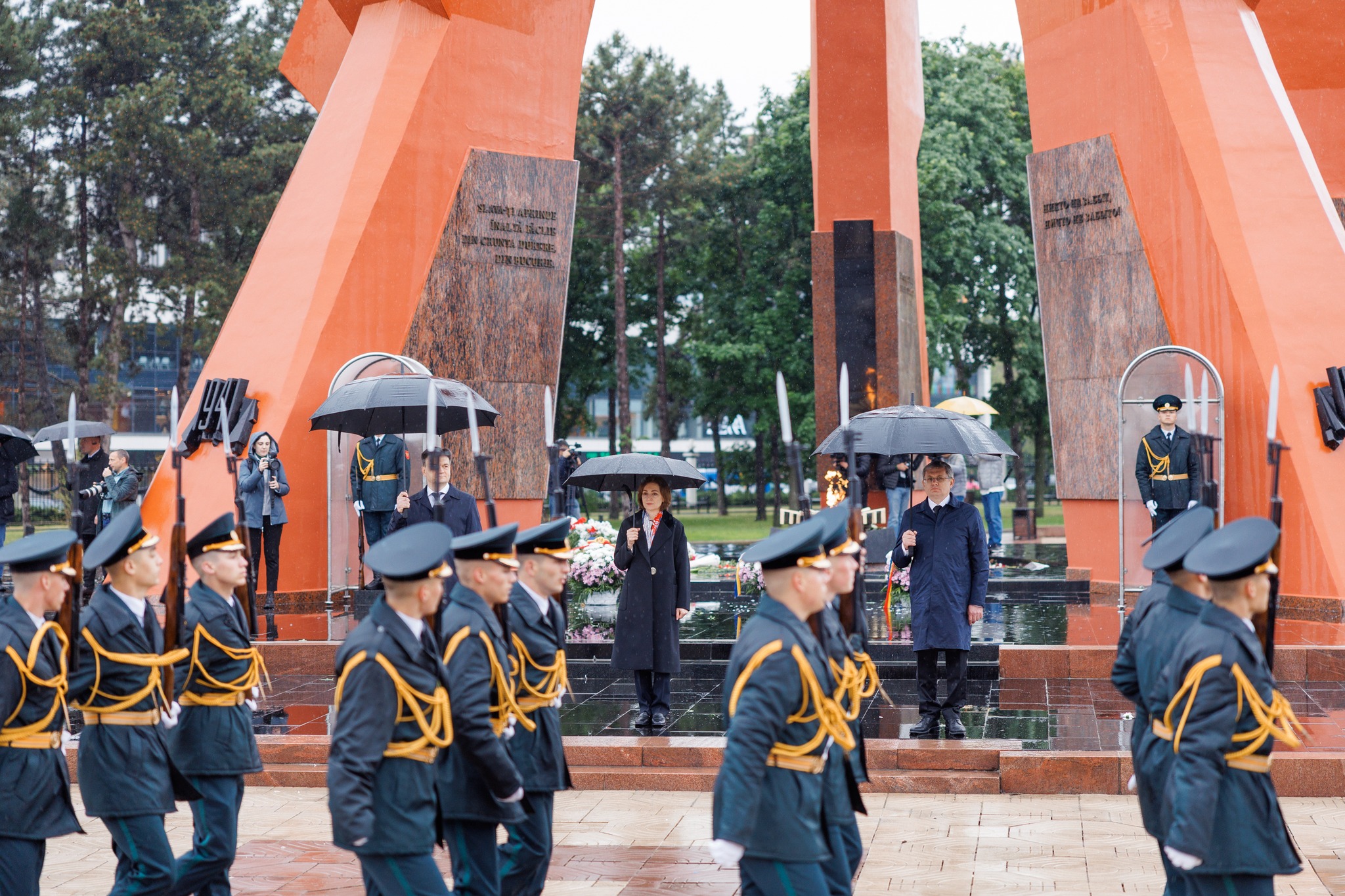 De 9 mai, conducerea Republicii Moldova a depus flori la monumentul soldaților sovietici de la Complexul „Eternitate” din Chișinău. Maia Sandu, Igor Grosu și Dorin Recean au fost însoțiți la