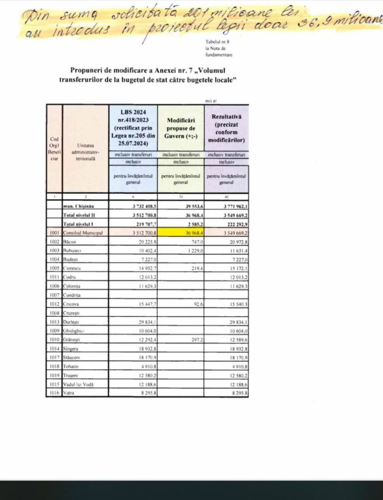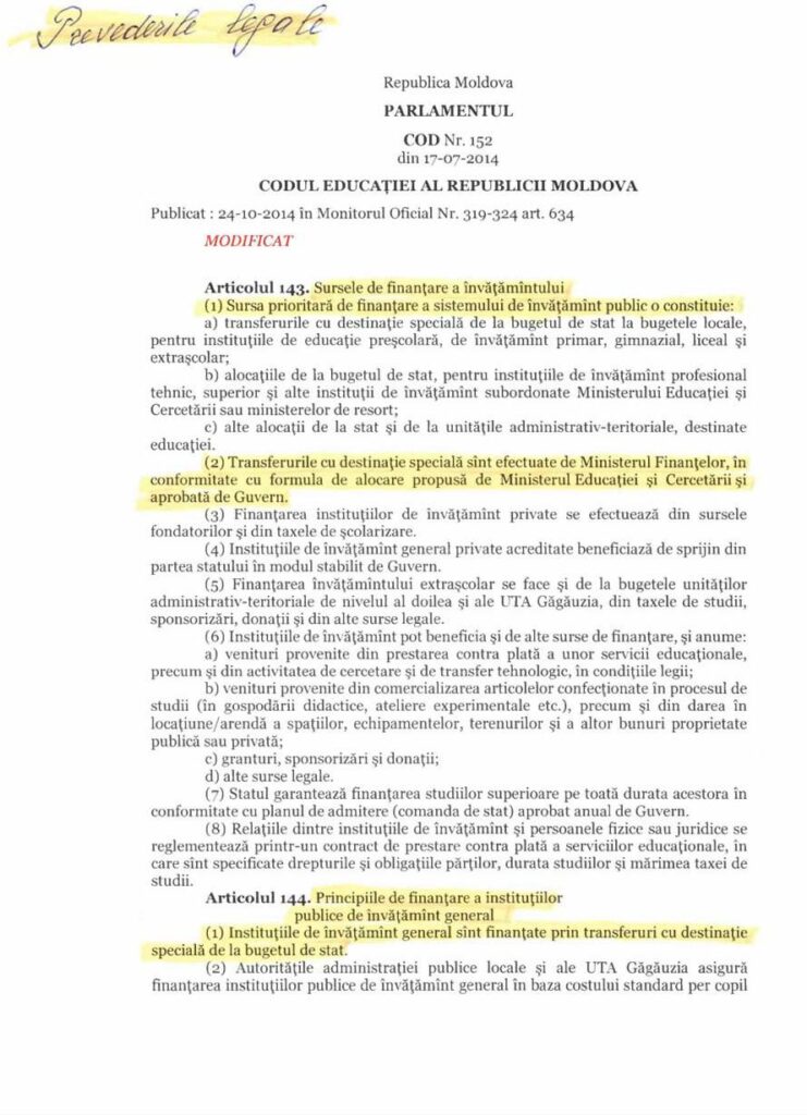 Potrivit lui, din 200 de milioane de lei care, conform legii, trebuie transferați municipalității pentru achitarea salariilor și premiilor profesorilor, au fost transferate doar 36 de milioane de lei.