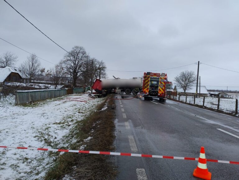 Un accident grav s-a produs marți pe drumul de ocolire a orașului Orhei. Un camion plin cu mere s-a răsturnat, iar șoferul a fost prins în interiorul autovehiculului. A fost