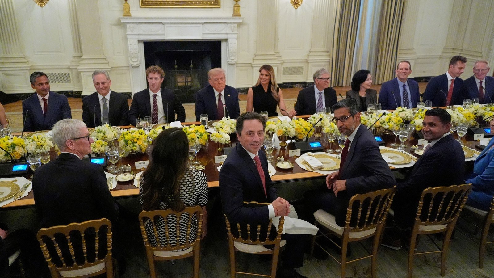 Președintele SUA, Donald Trump, a găzduit joi seara, la Casa Albă, un dineu cu unii dintre cei mai importanți lideri din industria tehnologică, pe care i-a numit „oameni străluciți” și