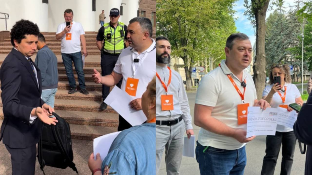 Ploaie cu „amenzi” la Parlament pentru deputații PAS. Aceștia au fost întâmpinați dimineața, în timp ce veneau la serviciu, de reprezentanții Partidului „Inima Moldovei”, care-i acuză că acumulează bani în