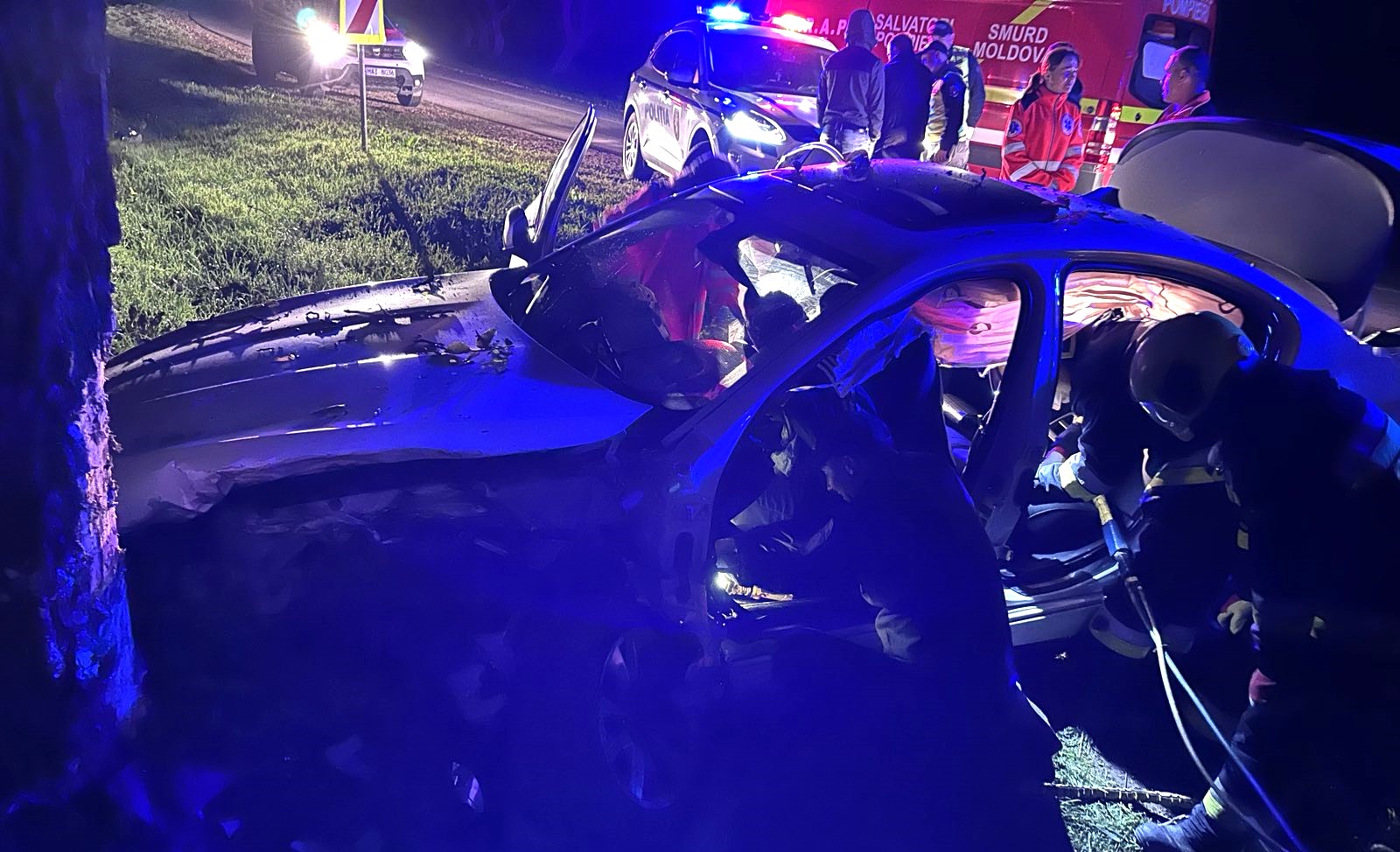 Un șofer care a intrat cu mașina într-un copac de pe marginea șoselei a avut nevoie de intervenția salvatorilor pentru a fi deblocat dintre fiare. Accidentul rutier a avut loc